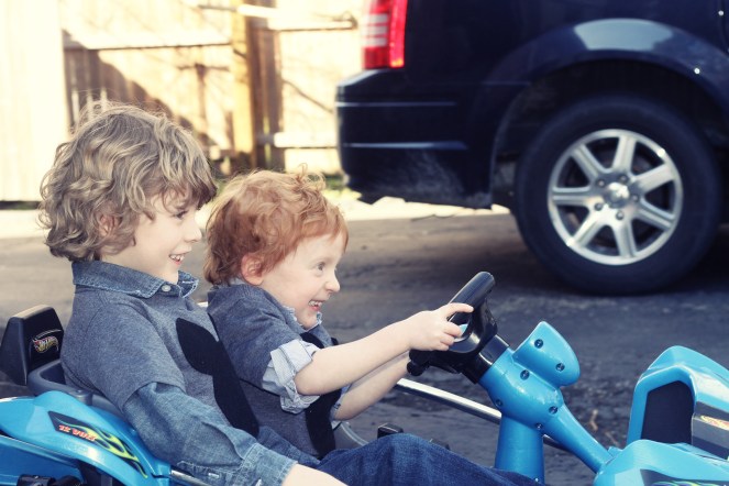 Surprise!!!!! Jude couldn’t talk he was so excited about his go-cart! (Victoria is cracking me up in this photo.)