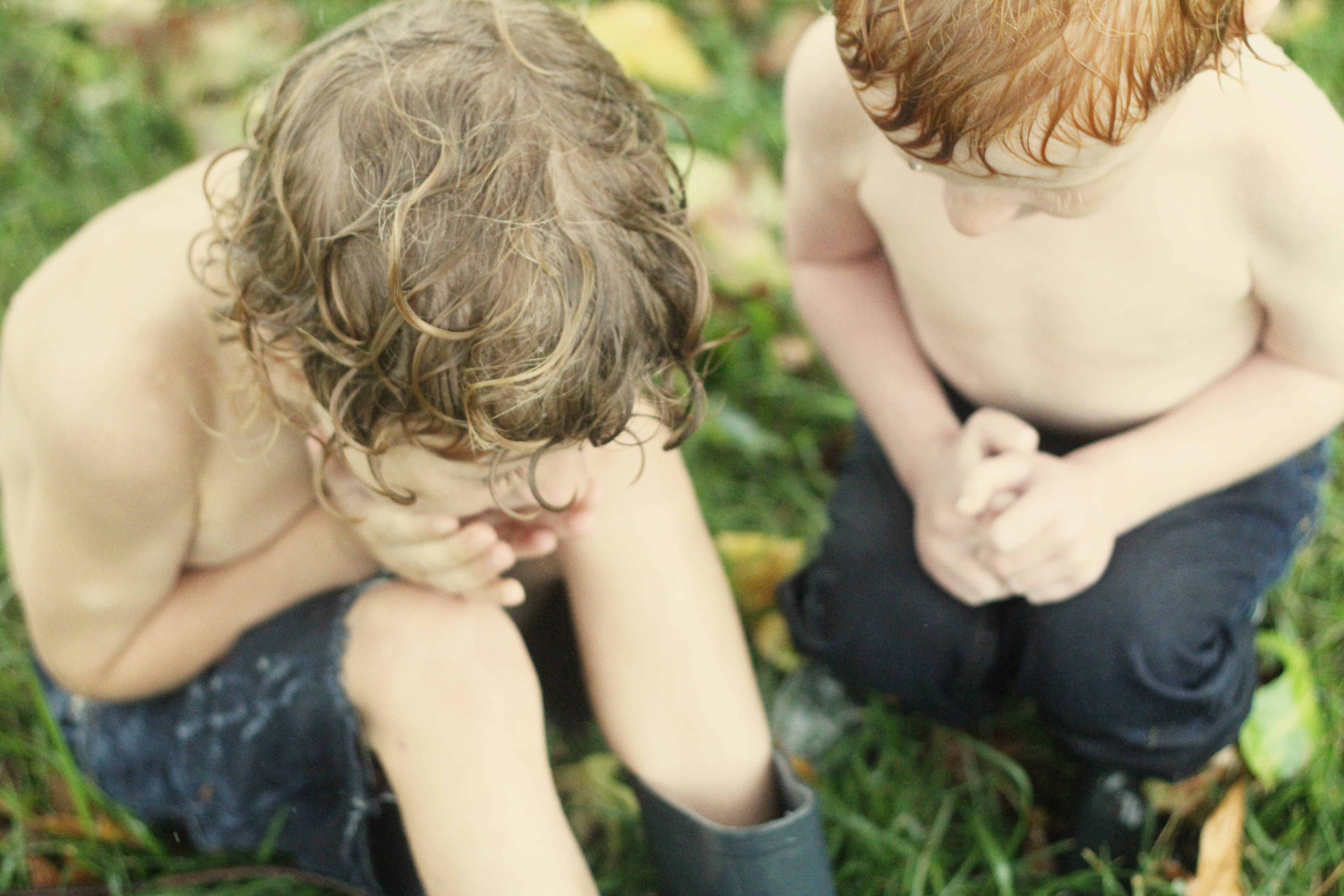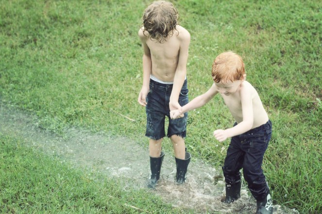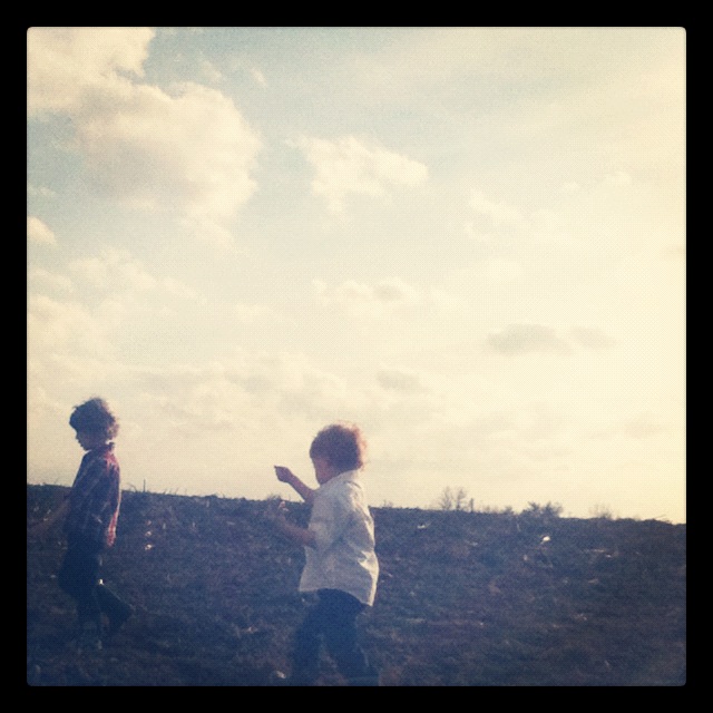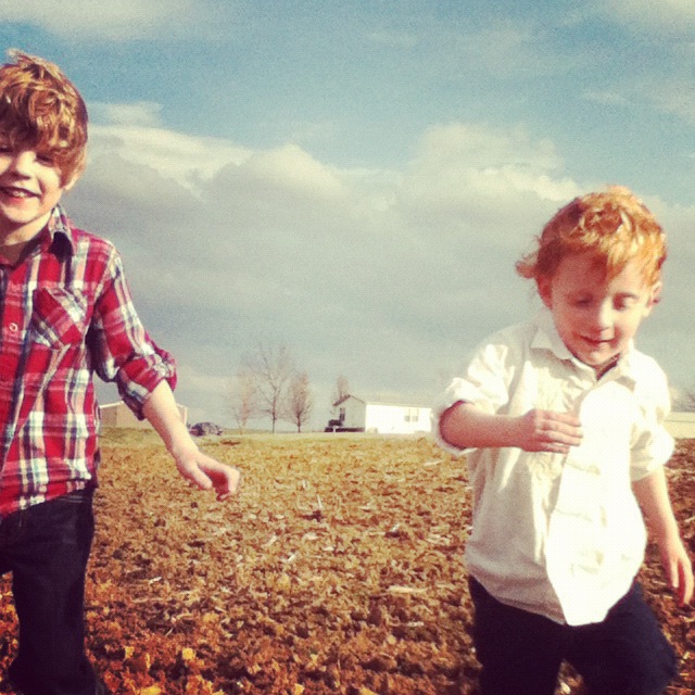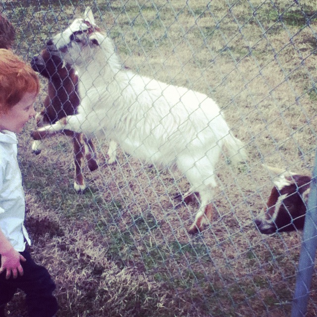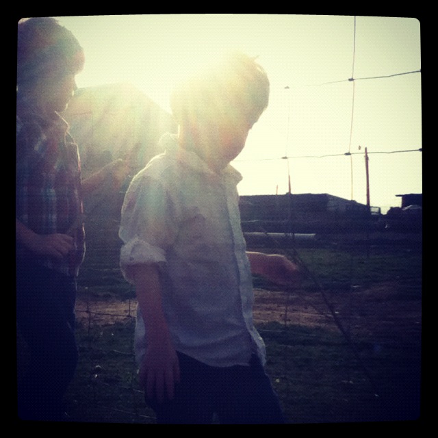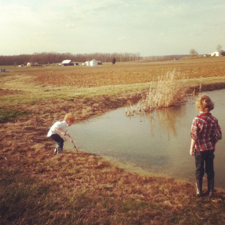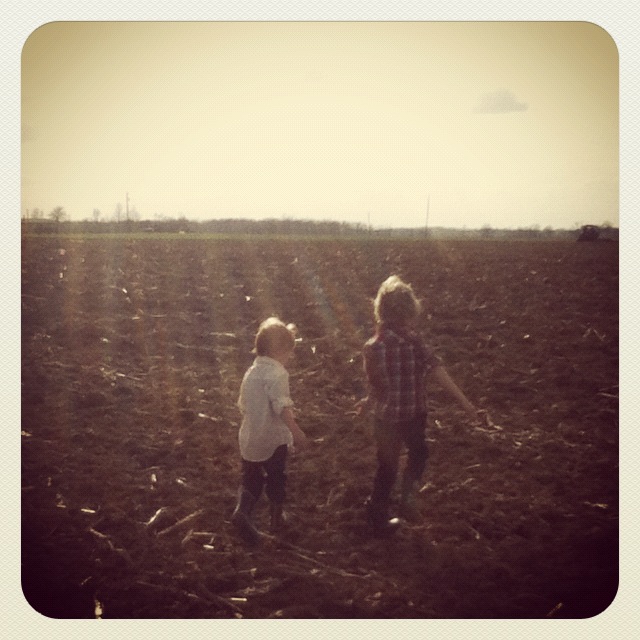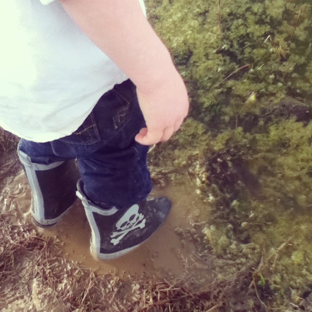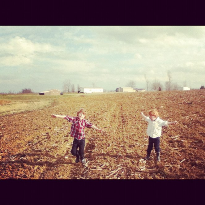 At my sister’s, the boys and I decide to go on a hike through a muddy field to see the sheep.