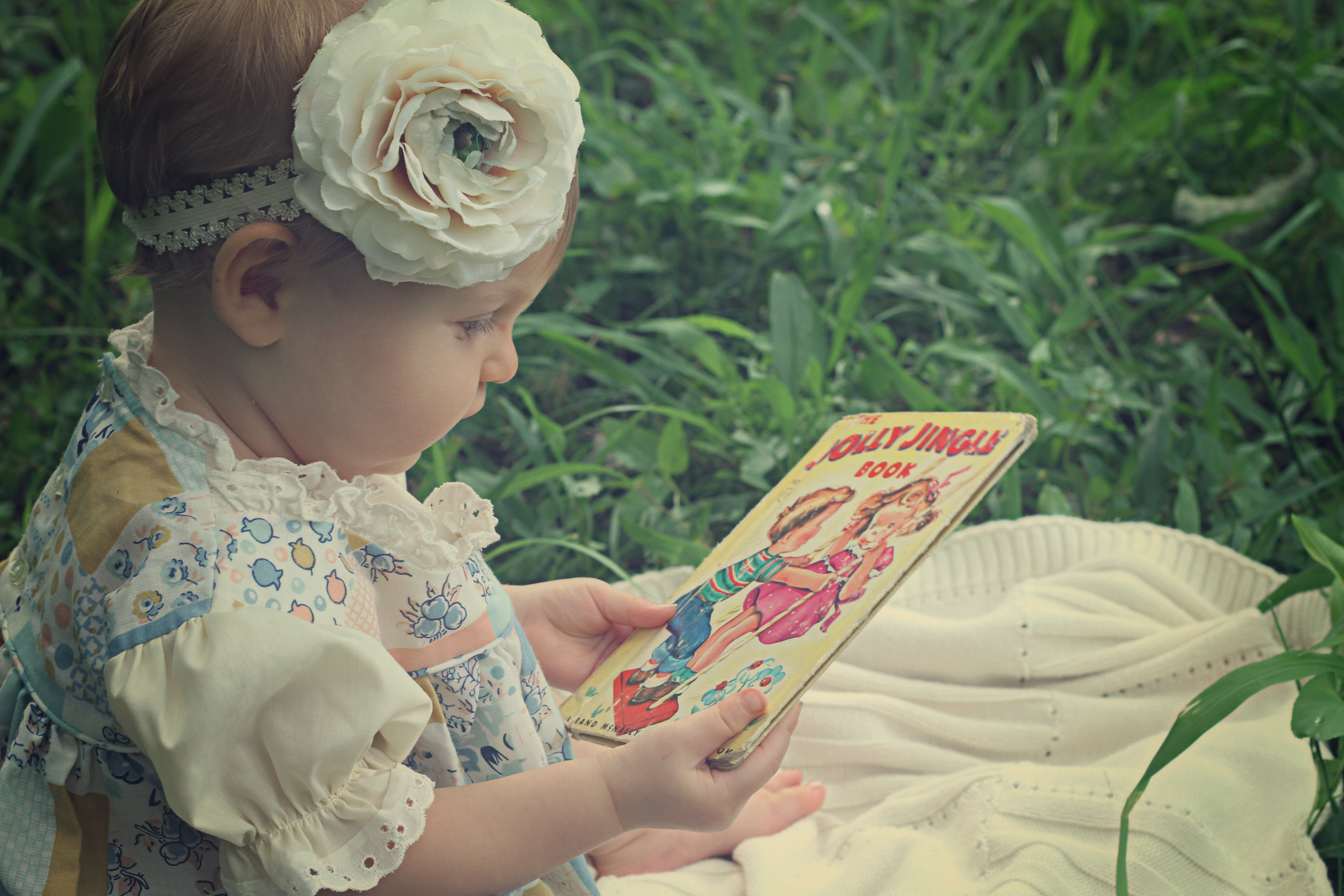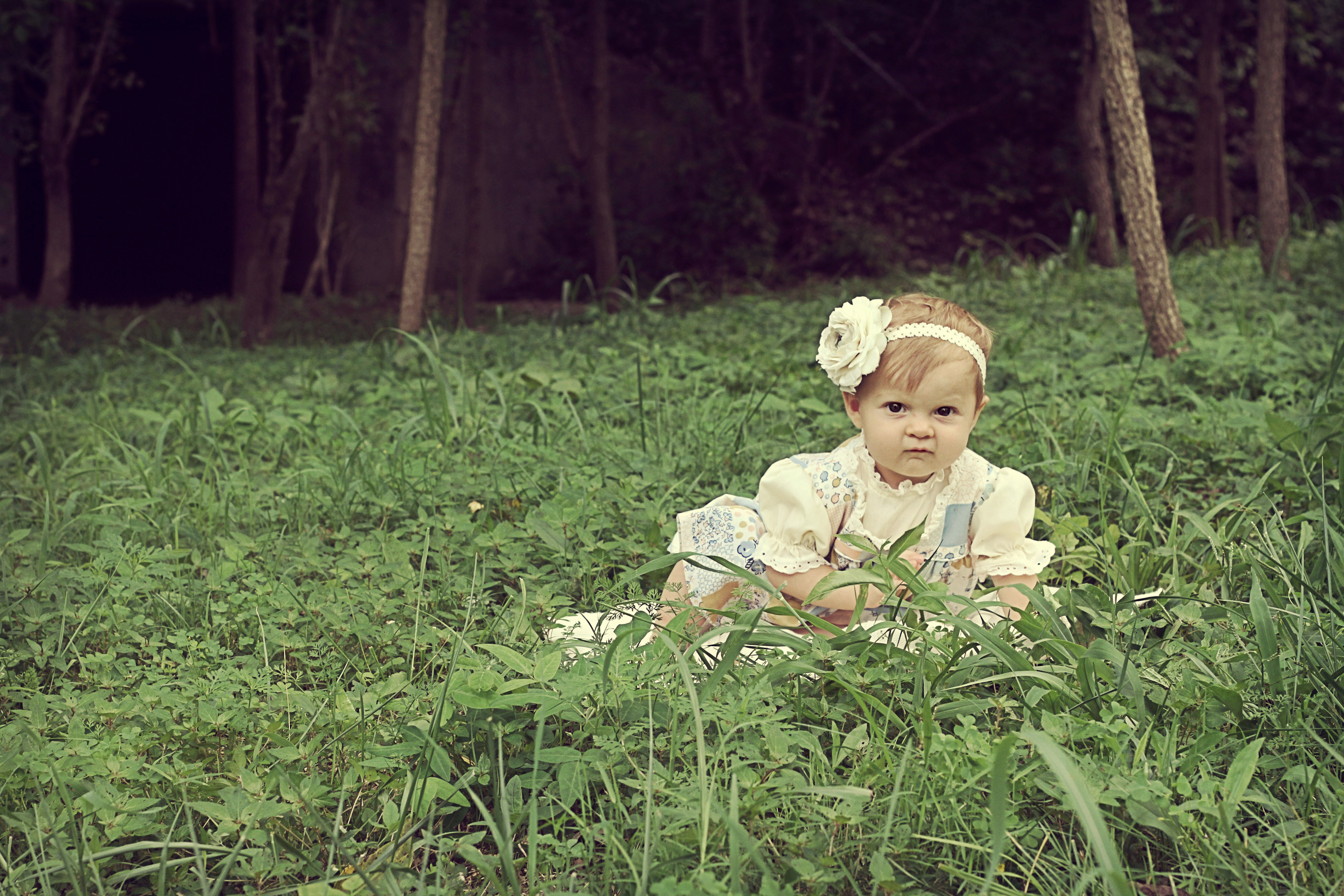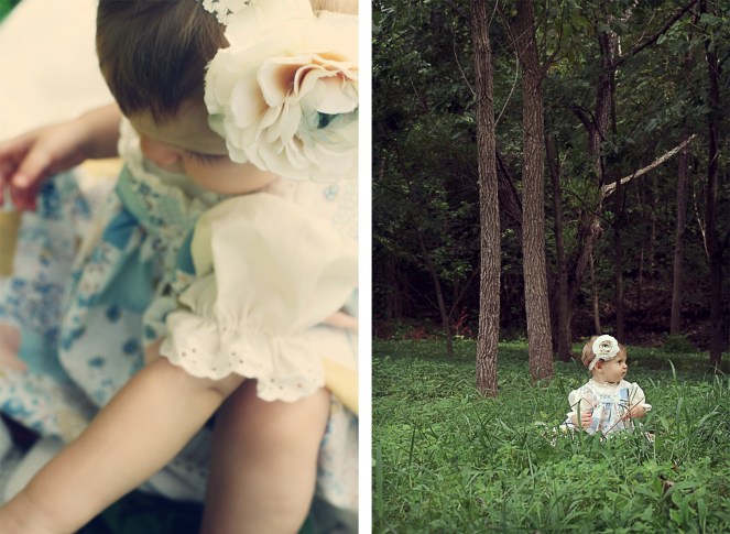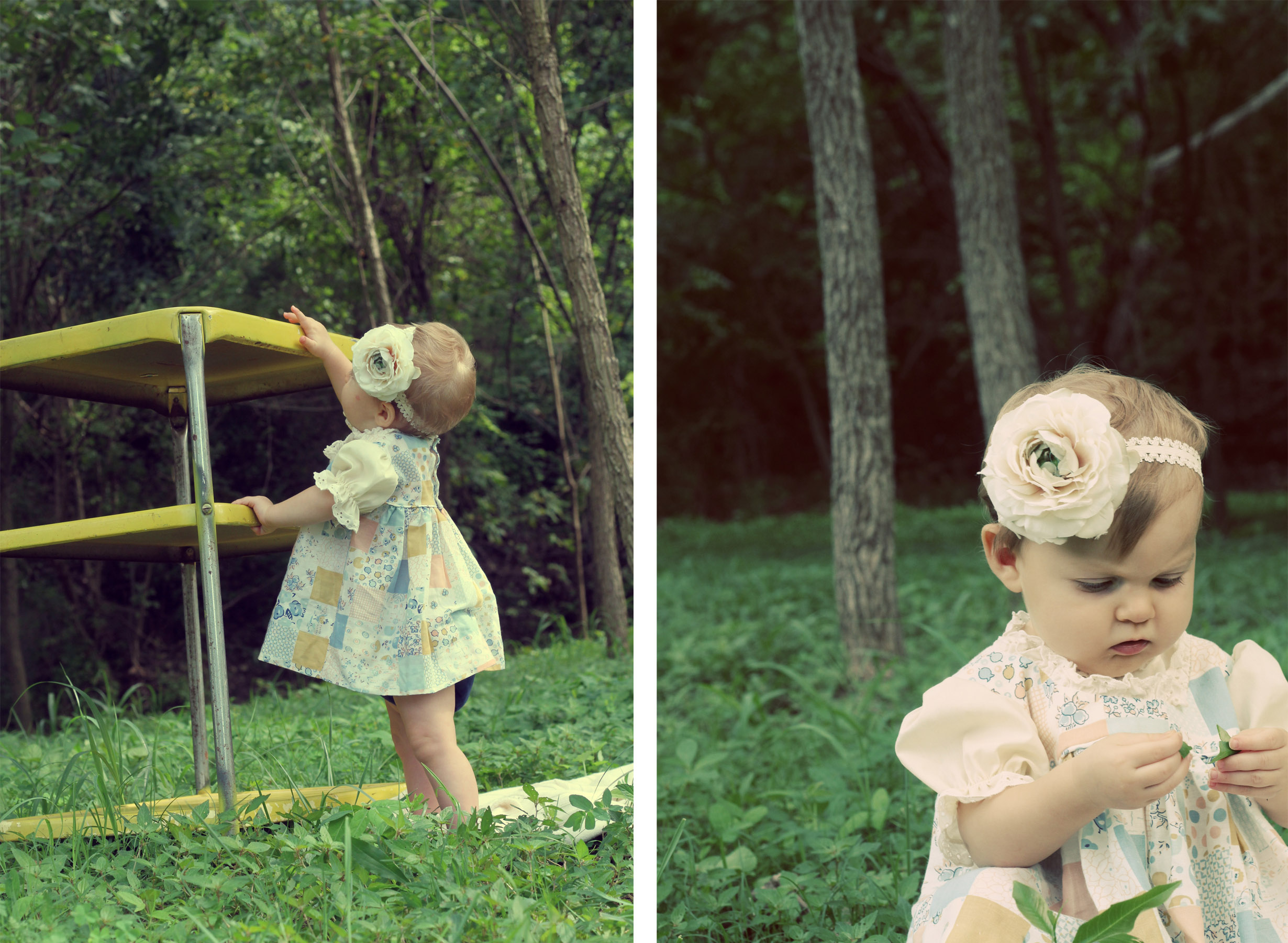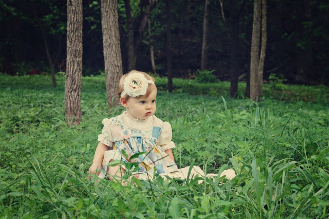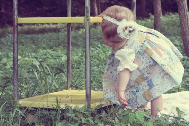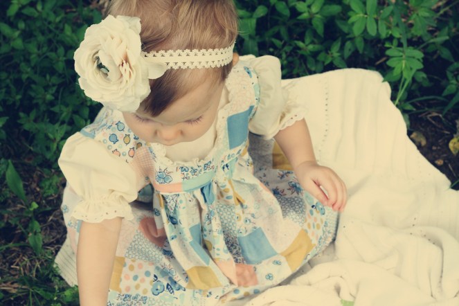 Estella next to me, in a hand stitched dress, holding her baby doll.
